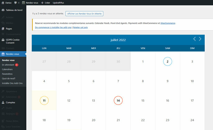 Sur WordPress, cela est rendu possible grâce à l’extension Booked.