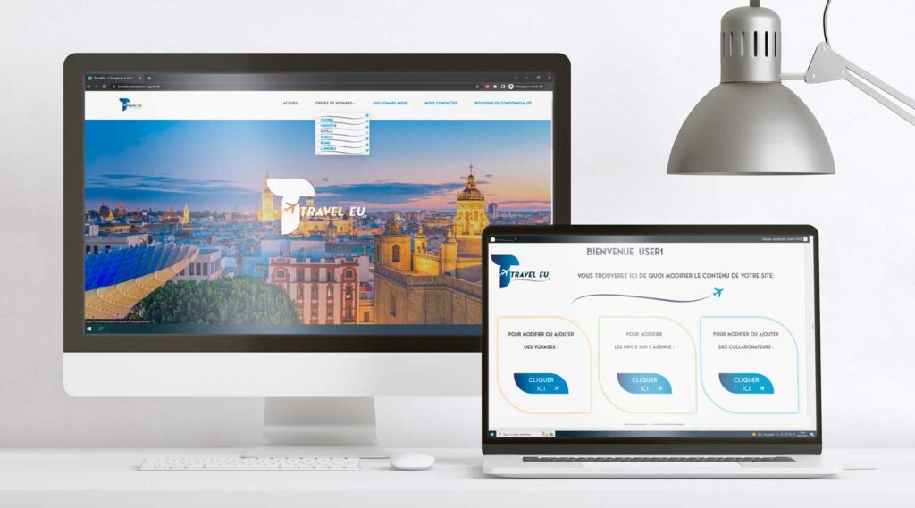 Réalisation sur le CMS WordPress, à l’aide du builder Elementor et de plugin adaptés, du site web de l’agence de voyage TravelEU, avec backoffice client permettant de personnaliser le contenu.