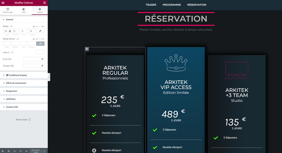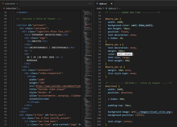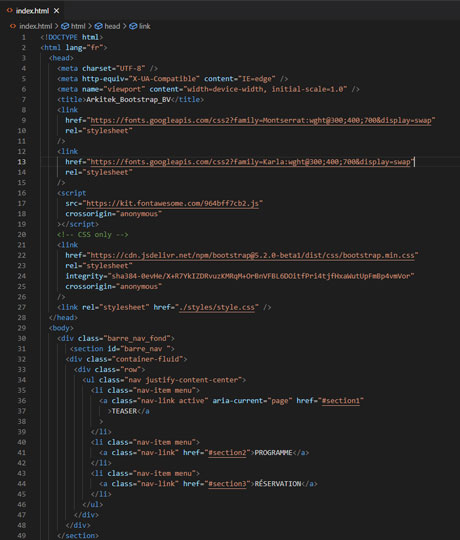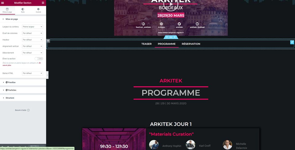 Dans le cadre de l’apprentissage des langages HTML/CSS et de l’utilisation de la bibliothèque Bootstrap, il est demandé de recréer le site internet de l’évènement fictif Arkitek. Le site est tout d’abord élaboré à l’aide de Bootstrap. Le contenu du site est alors découpé en « row » et « colonnes » facilement arrangeables pour une bonne responsivité. Ensuite un site équivalent est édité en HTML et CSS sans l’appui d’aucune bibliothèque. Le code écrit est par la suite passé au service de validation W3C pour en vérifier la propreté et la solidité. Enfin un 3ème site équivalent est créé sur le CMS WordPress à l’aide du builder Elementor. Les 3 sites sont visitables en cliquant sur les liens ci-dessus.
