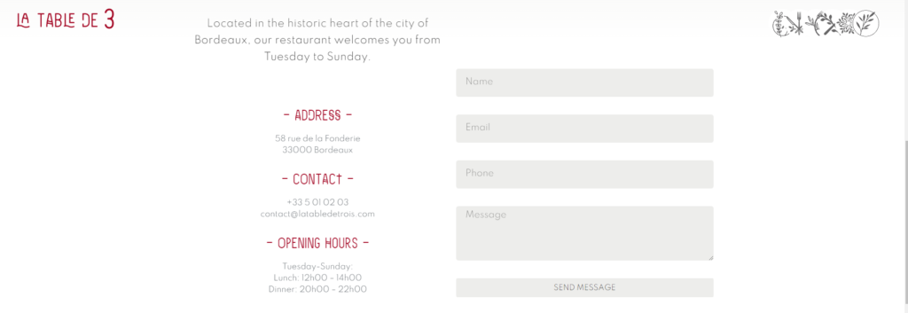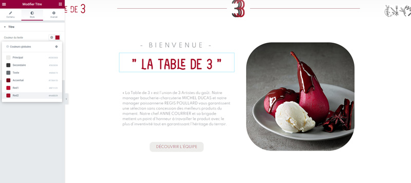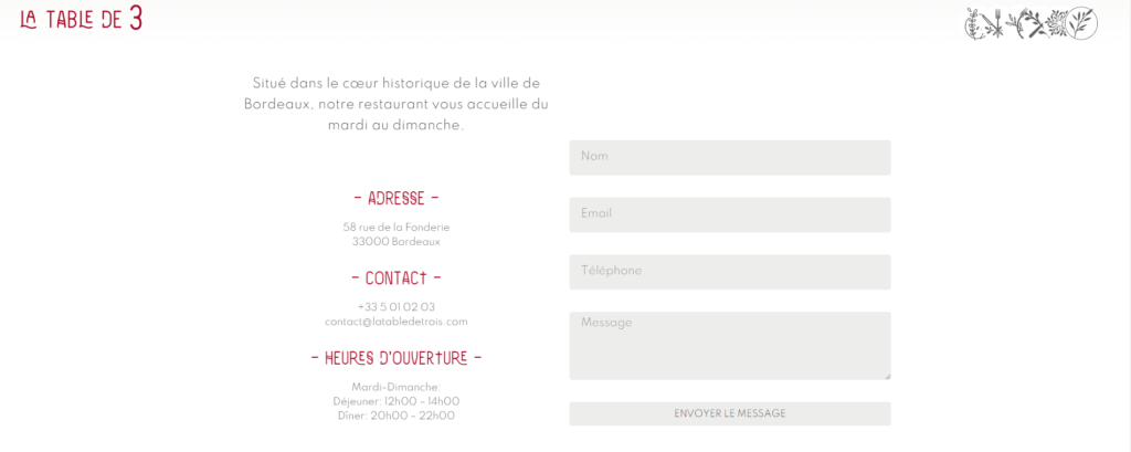 Réalisation sur le CMS WordPress, à l’aide du builder Elementor et du plugin Polylang, d’un site web multilingue (français – anglais) pour le restaurant La Table de 3