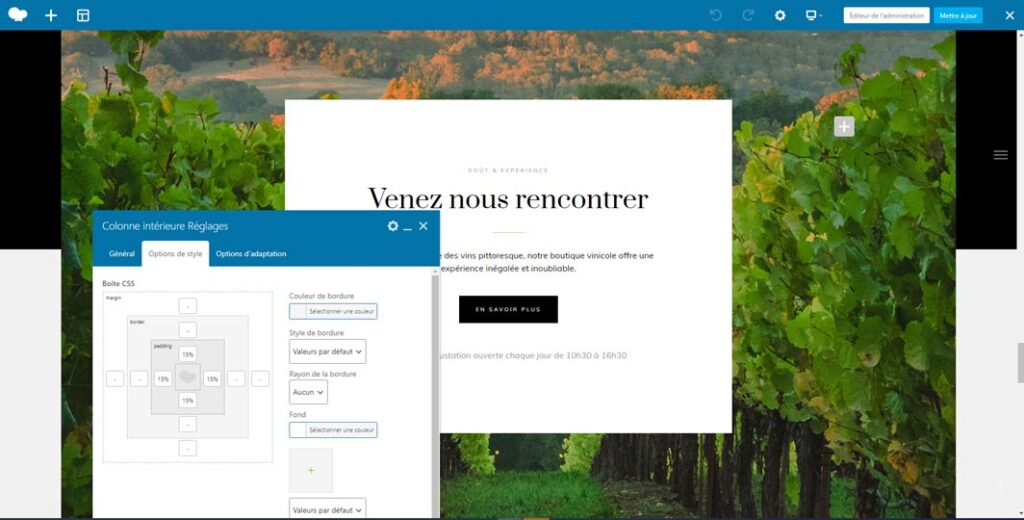 Réalisation sur le CMS WordPress, à l’aide du builder WP Bakery, d’un site web pour le domaine viticole Winery